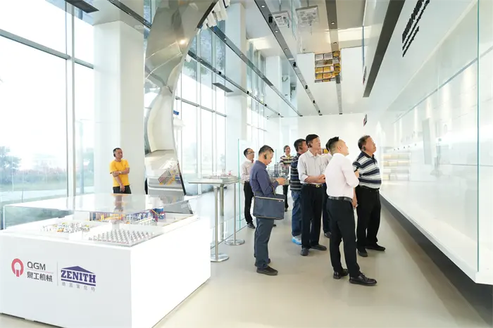 ఛైర్మన్ లిన్ బోకియాన్ మరియు అతని ప్రతినిధి బృందం మొదట Quangong Co., Ltd. అభివృద్ధి చరిత్ర యొక్క ఎగ్జిబిషన్ హాల్ను సందర్శించారు మరియు గ్రాఫిక్ డిస్ప్లే బోర్డులు, వీడియో మెటీరియల్లు మరియు భౌతిక ప్రదర్శనల ద్వారా, వారు కంపెనీ ప్రారంభం నుండి పరిశ్రమలో అగ్రగామిగా మారడం వరకు చేసిన పోరాటాన్ని పూర్తిగా అర్థం చేసుకున్నారు. Quangong బాధ్యత వహించే వ్యక్తి Quangong Co., Ltd. 40 సంవత్సరాలకు పైగా ఇటుక యంత్ర పరికరాల రంగంలో చేసిన వినూత్న పురోగతులను, అలాగే "హస్తకళ నాణ్యతను సృష్టిస్తుంది మరియు సాంకేతికత భవిష్యత్తును నడిపిస్తుంది" అనే కార్పొరేట్ తత్వశాస్త్రాన్ని వివరంగా పరిచయం చేసింది. టెక్నాలజికల్ రీసెర్చ్ అండ్ డెవలప్మెంట్ మరియు ఇండస్ట్రీ అప్గ్రేడ్లను ప్రోత్సహించడంలో క్వాంగాంగ్ కో., లిమిటెడ్ సాధించిన విజయాలను ఛైర్మన్ లిన్ బోకియాన్ ఎంతో ప్రశంసించారు.