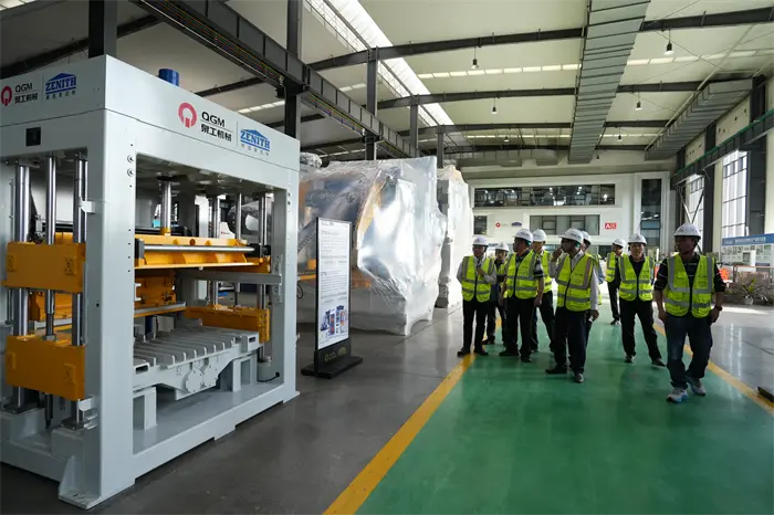 తరువాత, అతిథులు ఇటుక నమూనా ప్రదర్శన ప్రాంతానికి తరలివెళ్లారు మరియు QGM పరికరాల ద్వారా ఉత్పత్తి చేయబడిన వివిధ అధిక-నాణ్యత పారగమ్య ఇటుకలు, పేవ్మెంట్ ఇటుకలు, బ్లాక్లు మరియు ఇతర ఉత్పత్తులను వీక్షించారు మరియు సంస్థ యొక్క "ఘన వ్యర్థాల రీసైక్లింగ్" సాంకేతిక విజయాలపై గొప్ప ఆసక్తిని వ్యక్తం చేశారు. ఇటుక తయారీ పరికరాల ప్రదర్శన ప్రాంతంలో, ఛైర్మన్ లిన్ బోకియాన్ మరియు అతని పార్టీ QGM ద్వారా స్వతంత్రంగా అభివృద్ధి చేయబడిన పూర్తి ఆటోమేటిక్ బ్లాక్ ఫార్మింగ్ మెషిన్ మరియు ఇంటెలిజెంట్ ప్రొడక్షన్ లైన్ వంటి ప్రధాన పరికరాలను నిశితంగా పరిశీలించారు మరియు అక్కడికక్కడే సాంకేతిక ప్రయోజనాలు మరియు మార్కెట్ అప్లికేషన్ అవకాశాలను మార్పిడి చేసుకున్నారు. ఛైర్మన్ లిన్ బో అత్యాధునిక పరికరాల తయారీ మరియు గ్రీన్ బిల్డింగ్ మెటీరియల్స్ రంగాలలో QGM యొక్క అత్యుత్తమ సహకారాన్ని పూర్తిగా ధృవీకరించారు మరియు నొక్కిచెప్పారు: "QGM అనేది Quanzhou లోని ప్రైవేట్ సంస్థల యొక్క ఒక వినూత్న నమూనా. భవిష్యత్తులో ఒక వంతెనగా సమాఖ్య పాత్రను మరింతగా పోషించాలని మేము ఆశిస్తున్నాము. ప్రపంచ." డిప్యూటీ జనరల్ మేనేజర్ ఫు హువాబిన్ స్పందిస్తూ, కంపెనీ పరిశోధన మరియు అభివృద్ధిలో పెట్టుబడిని పెంచడం కొనసాగిస్తుందని మరియు తెలివైన పరికరాలు మరియు గ్రీన్ మ్యానుఫ్యాక్చరింగ్ యొక్క సమగ్ర అభివృద్ధికి కొత్త అవకాశాలను అన్వేషించడానికి అన్ని వర్గాల భాగస్వాములతో కలిసి పని చేస్తుంది.
