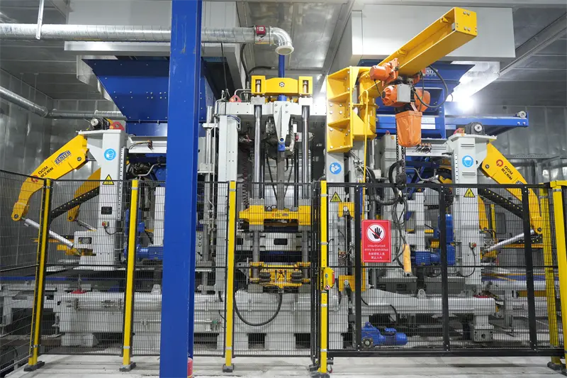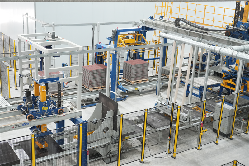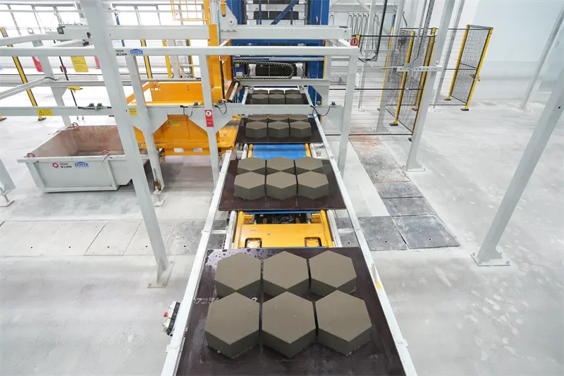 ఉత్పత్తి శ్రేణి యొక్క ప్రధాన పరికరాలు QGM ద్వారా కొత్తగా అభివృద్ధి చేయబడిన ZN1500-2C బ్లాక్ ఫార్మింగ్ మెషీన్ను ఉపయోగిస్తుంది, ఇది అనేక పేటెంట్ టెక్నాలజీలను ఏకీకృతం చేస్తుంది. ఈ పరికరాలు తెలివైన వేగవంతమైన అచ్చు మార్పు వ్యవస్థతో అమర్చబడి ఉంటాయి, ఇది పేవ్మెంట్ ఇటుకలు మరియు పారగమ్య ఇటుకలు వంటి విభిన్న ఉత్పత్తులను ఉత్పత్తి చేయడానికి త్వరగా మారవచ్చు; పారిశ్రామిక ఇంటర్నెట్ ప్లాట్ఫారమ్ ఆధారంగా, ఇది ఉత్పత్తి డేటా యొక్క నిజ-సమయ పర్యవేక్షణ మరియు తెలివైన విశ్లేషణను గుర్తిస్తుంది, పరికరాల వైఫల్య హెచ్చరిక ప్రతిస్పందన సమయాన్ని 60% తగ్గిస్తుంది మరియు ఆపరేషన్ మరియు నిర్వహణ సామర్థ్యాన్ని గణనీయంగా మెరుగుపరుస్తుంది.