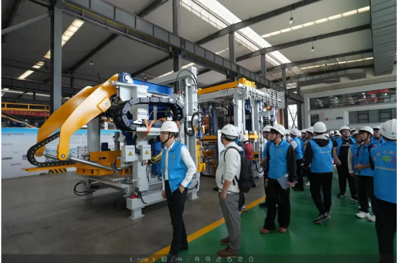 పరికరాల తయారీ వర్క్షాప్లో, సందర్శకులు లేబొరేటరీ, అసెంబ్లీ వర్క్షాప్ మరియు డీబగ్గింగ్ వర్క్షాప్లో పర్యటించారు, ముడి పదార్థాల విశ్లేషణ నుండి ఆటోమేటెడ్ బ్లాక్-మేకింగ్ పరికరాల పూర్తి సెట్ల వరకు మొత్తం ప్రక్రియ గురించి తెలుసుకున్నారు. నమూనా ప్రాంతంలో, ఇండోర్ మరియు అవుట్డోర్ వాల్ బ్రిక్స్, అవుట్డోర్ పేవింగ్ ఇటుకలు మరియు కర్బ్ స్టోన్స్, నీటి సంరక్షణ మరియు వరద నియంత్రణ పదార్థాలు, పర్యావరణ వాలు రక్షణ మరియు గురుత్వాకర్షణ నిలుపుదల గోడలు సహా కంపెనీ యొక్క ఇటుక తయారీ యంత్రాలను ఉపయోగించి తయారు చేయబడిన ఉత్పత్తుల యొక్క వివిధ లక్షణాలు మరియు అప్లికేషన్లు ప్రదర్శించబడ్డాయి. సమావేశ మందిరంలో, కంపెనీ ప్రచార వీడియో ప్రదర్శించబడింది.