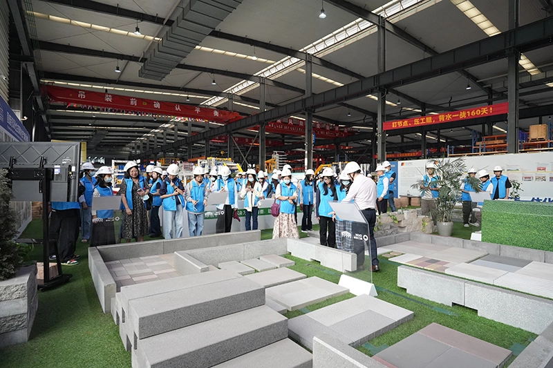 పరికరాల తయారీ వర్క్షాప్లో, సందర్శకులు వాల్ బ్లాక్లు, పేవింగ్ స్టోన్స్, ఫ్లడ్ కంట్రోల్ మెటీరియల్స్, ఎకోలాజికల్ స్లోప్ ప్రొటెక్షన్ మరియు గ్రావిటీ రిటైనింగ్ వాల్లతో సహా క్వాంగాంగ్ మెషినరీ యొక్క ఇటుక తయారీ యంత్రాలను ఉపయోగించి తయారు చేసిన ఉత్పత్తుల యొక్క వివిధ స్పెసిఫికేషన్లు మరియు అప్లికేషన్లను సందర్శించారు. ఎగ్జిబిషన్ ఏరియా, లాబొరేటరీ, అసెంబ్లీ వర్క్షాప్ మరియు డీబగ్గింగ్ వర్క్షాప్లో సందర్శకులు కంపెనీ ఉత్పత్తుల తయారీ ప్రక్రియ గురించి తెలుసుకున్నారు.