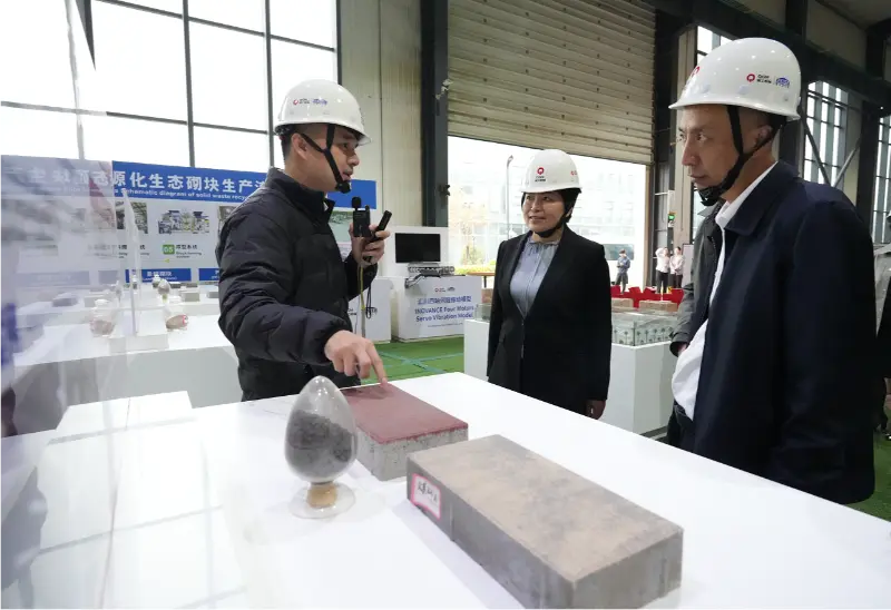 ఇటుక నమూనా ప్రదర్శన ప్రాంతంలో, మిస్టర్. లియు మిన్ మరియు అతని ప్రతినిధి బృందం ఉత్పత్తి తయారీ ప్రక్రియలు మరియు అప్లికేషన్ దృశ్యాలకు సంబంధించిన ప్రెజెంటేషన్లను వింటున్నప్పుడు వివిధ రకాల పర్యావరణ అనుకూలమైన మరియు ఆచరణాత్మకమైన ఇటుక నమూనాలను పరిశీలించారు. వారు Quangong Machinery Co., Ltd.ని గ్రీన్ డెవలప్మెంట్కు కట్టుబడి ఉన్నందుకు మరియు ఘన వ్యర్థాల వనరుల-సమర్థవంతమైన వినియోగాన్ని ప్రోత్సహించడానికి దాని చొరవలను ప్రశంసించారు, ప్రభుత్వ విధానాలు మరియు మార్కెట్ డిమాండ్లకు అనుగుణంగా మరిన్ని ఉత్పత్తులను అభివృద్ధి చేయడానికి కంపెనీని ప్రోత్సహిస్తున్నారు.