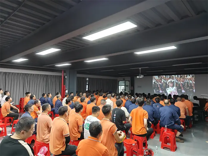 మొత్తం చైనీస్ ప్రజలకు సెప్టెంబర్ 3 గొప్ప ప్రాముఖ్యత కలిగిన రోజు. ఈ ప్రత్యేక రోజున, Fujian Quangong Machinery Co.,Ltd చైర్మన్ ఫు బింగువాంగ్ మరియు జనరల్ మేనేజర్ Fu Xinyuan కంపెనీ కాన్ఫరెన్స్ రూమ్లోని ఉద్యోగులందరూ గ్రాండ్ మిలిటరీ కవాతును వీక్షించడానికి మరియు ఈ ఉత్తేజకరమైన చారిత్రక క్షణాన్ని చూసేందుకు నాయకత్వం వహించారు.