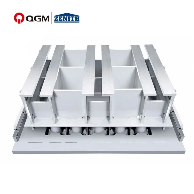 (3) న్యూమాటిక్ మోల్డ్ బిగింపు పరికరం సులభంగా అచ్చు మార్పు కోసం అందిస్తుంది. అచ్చు తదుపరి బిగింపులు లేకుండా ఉంచబడుతుంది - ఉదా. బోల్ట్లు - అచ్చు హోల్డర్పై. ఇది వాయుపరంగా పనిచేసే బిగింపు లివర్ల ద్వారా పరిష్కరించబడుతుంది. ప్రీ- మరియు మెయిన్ వైబ్రేషన్ యొక్క వ్యక్తిగత సర్దుబాట్లకు కృతజ్ఞతలు తెలుపుతూ సరైన వైబ్రేషన్ ఫలితాలు మరియు ఎక్కువ కాలం అచ్చు జీవితకాలం సాధించవచ్చు. అచ్చు బిగింపు పరికరాన్ని ఇప్పుడు ఇతర యంత్రం మరియు అచ్చు తయారీదారుల అచ్చు బందు వ్యవస్థలకు అనుగుణంగా మార్చవచ్చు.